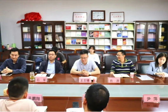 本站讯 5月9日下午,岳阳楼区委宣传部副部长钟广宇、岳阳楼区融媒体中心主任吴鹏翔等一行来公司考察交流,公司党委书记石军、经理王文锋、副经理肖涛、实验室主任李明等参加座谈会。
