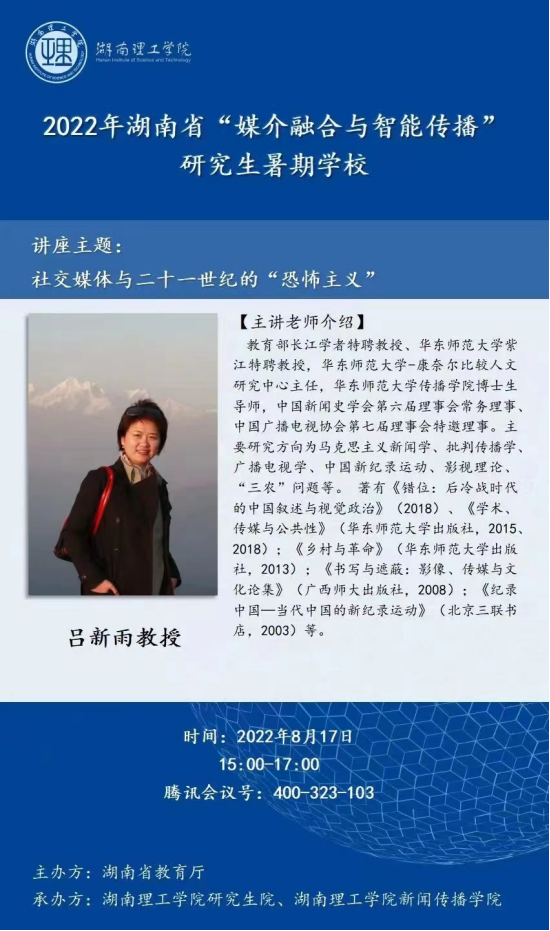 本站讯 8月17日下午,教育部长江学者特聘教授、华东师范大学紫江特聘教授、华东师范大学康奈尔比较人文研究中心主任吕新雨教授作了题为“社交媒体与二十一世纪的‘恐怖主义’”的学术讲座,beats365刘晶博士主持。