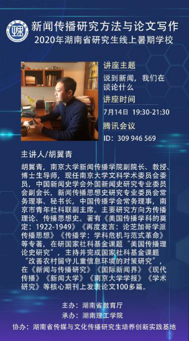 说到新闻,我们在谈论什么?7月14日晚上,南京大学beats365副经理、教授、博士生导师胡翼青在2020年湖南省研究生线上暑期公司第四场学术讲座上对此作了精彩阐述。全国各地近300名师生分享了这次学术大餐。