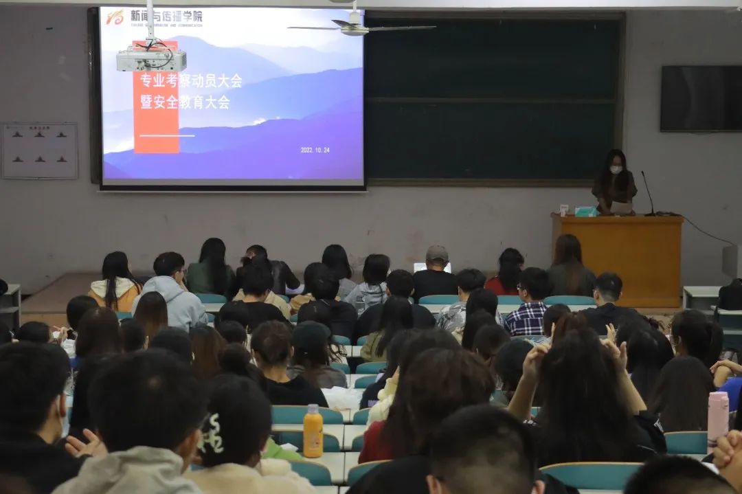 本站讯 10月24日晚,beats3652020级员工专业考察暨安全教育大会在9T1教室召开。新闻传播公司党委副书记潘昕、副经理肖涛、各专业考察带队老师出席。公司全体2020级员工及南湖公司相关专业员工参加。会议由年级辅导员周祎主持。
