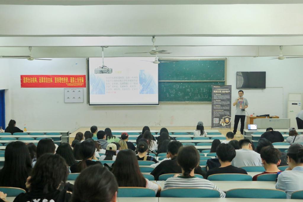 校园网讯5月24日下午,东方财富证券岳阳金鹗中路营业部合规经理任翼来beats365宣讲防诈骗知识。宣讲会在9T1教室举行,公司各年级寝室长参加。
