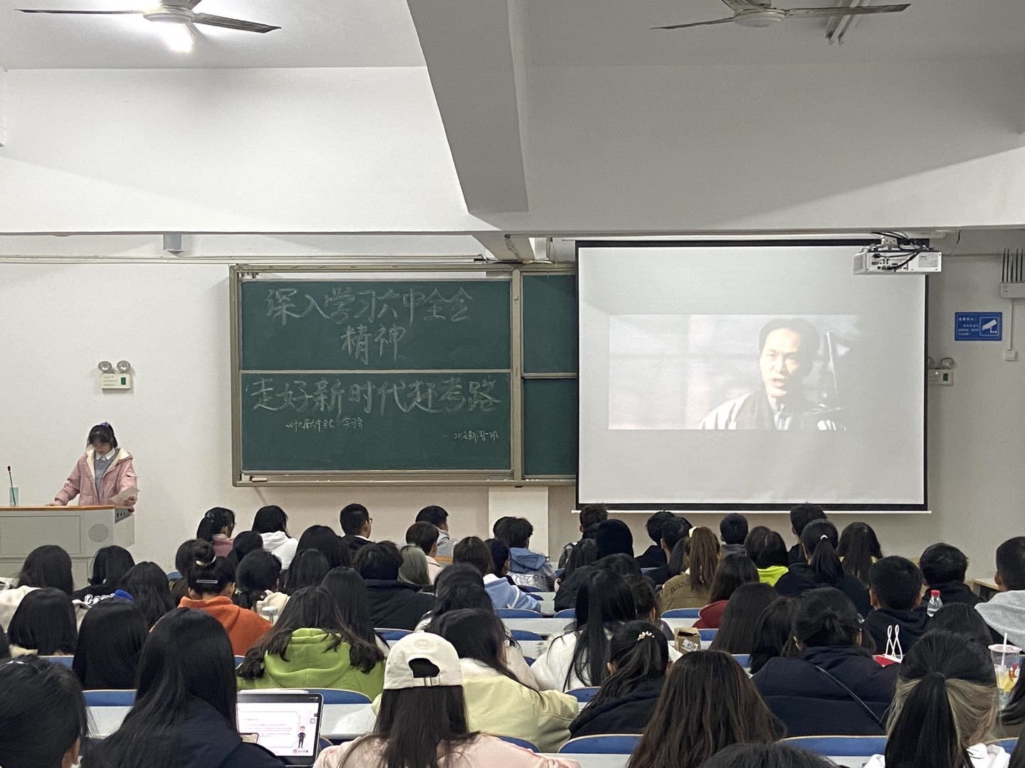 尹诗以第十九届六中全会的主要内容为导入,重点介绍了“两个确立”、“四个伟大成就”与“十大坚持”的具体内涵,带领大家学习领会《中共中央关于党的百年奋斗重要成就和历史经验的决议》内容,号召同学们牢记初心使命,明确使命担当,不负时代,不负韶华。(员工记者/欧美姿 责编/张政 主审/肖涛 终审/方庭)