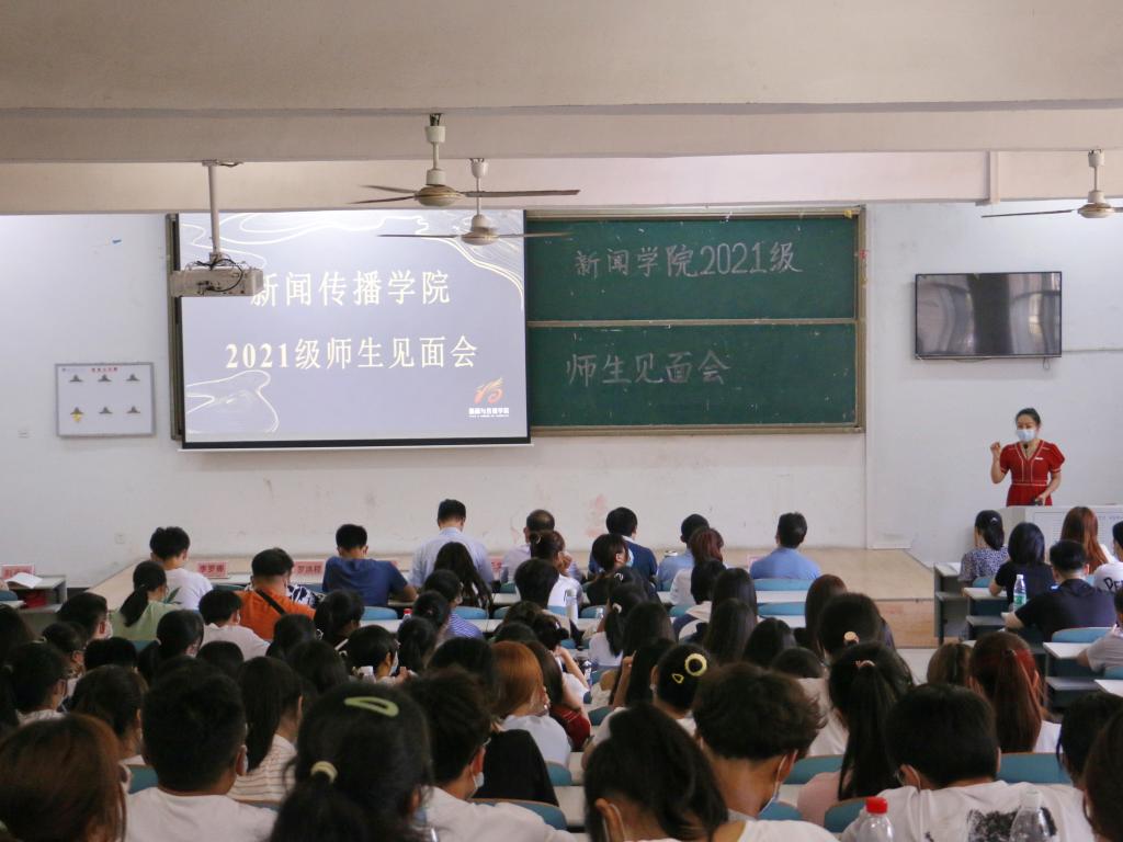 校园网讯9月12日下午,beats365在9T1教室召开2021级师生见面会,新闻传播公司党委书记方庭、经理王文锋、副经理柳溪、党委副书记潘昕、副经理肖涛和辅导员、新生班主任参加。