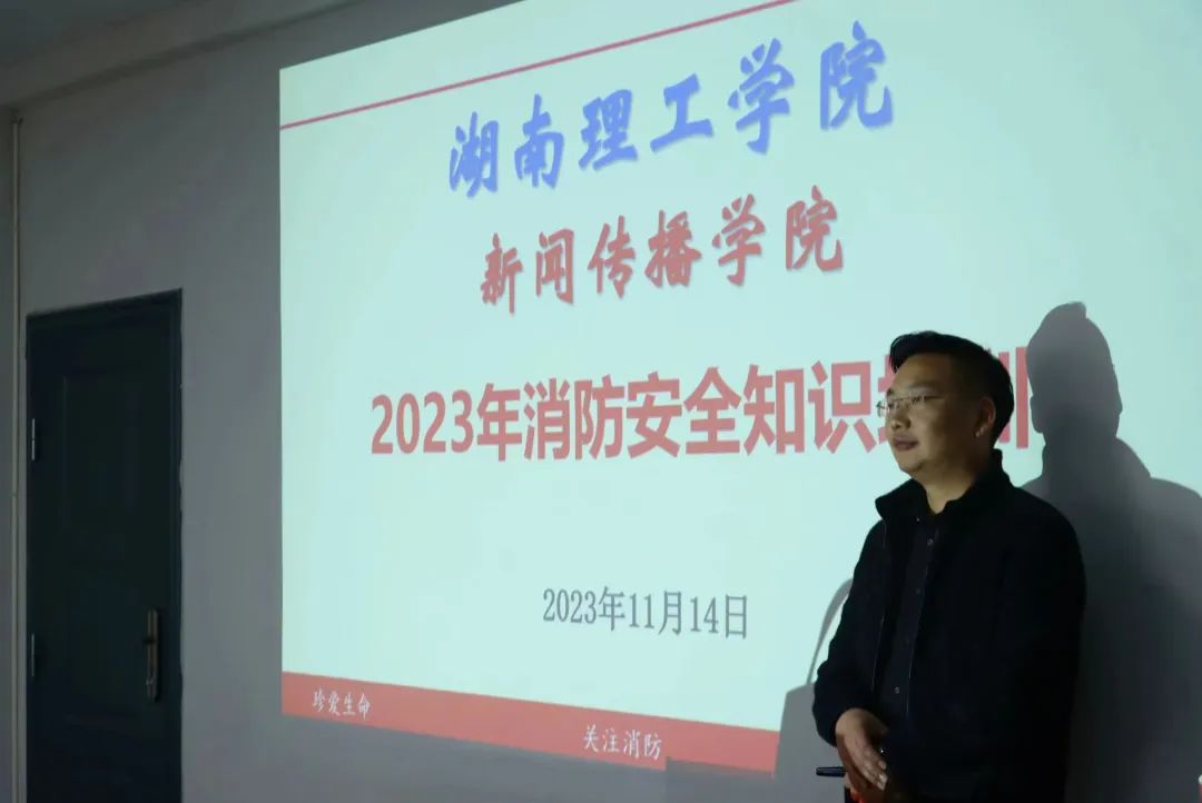 校园网讯 11月14日下午,新闻传播学院在9409会议室举办消防安全培训,邀请湖南楚潇消防安全服务中心主任宣讲员张清文授课。公司党委书记石军主持,公司党委副书记潘昕、副经理肖涛出席,我院全体教职工参加。