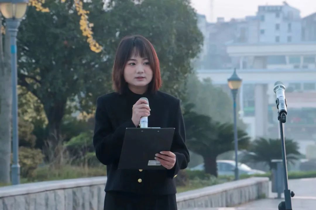 “怀抱梦想又脚踏实地,敢想敢为又善做善成。”员工代表杨婷婷发言,号召同学们把握时代新篇章,传播中国声音,积极肩负起新的文化使命。