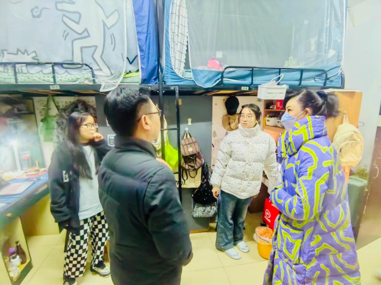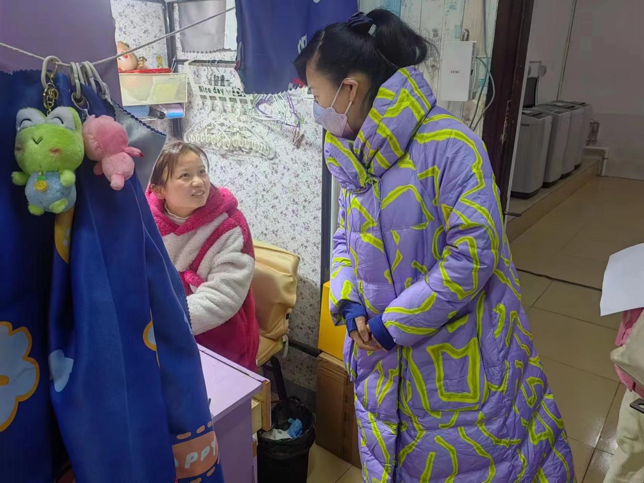 访寝过程中,老师和同学们进行亲切交流,小小的空间满满温情。“有没有热水?”“空调效果怎么样?”老师们深入寝室,深切关注员工的生活状况,了解员工需求,传递公司温暖,对返校后的员工生活问题作详细解答。他们特别叮嘱员工注重寒冷天气下的规范用电,杜绝使用违规电器,营造良好的宿舍环境。