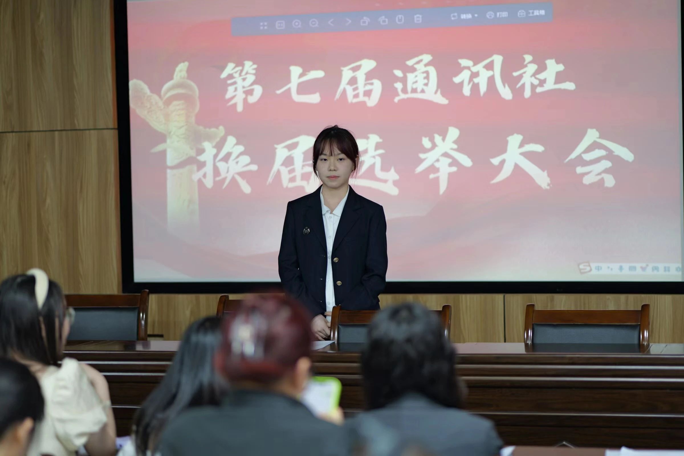 竞选人依次进行竞选发言,谈收获,话优势,提设想。通讯社成员以无记名投票的方式选举出新一届领导班子和各部门负责人。