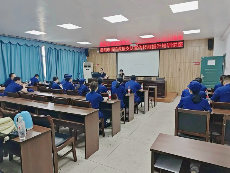 当天,湖南理工公司党委宣传部副部长楚霖受邀为支队宣传干事进行宣传技能培训。岳阳市消防救援支队为2023级员工开展消防救援知识讲座。