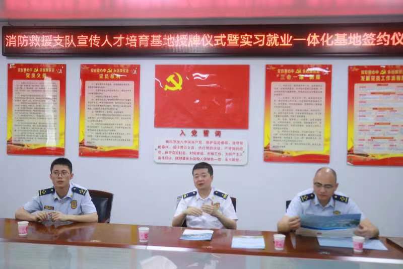 双方共同签署了合作协议,肖进代表岳阳市消防救援支队向公司授予“岳阳市消防救援支队宣传人才培育基地”牌匾。