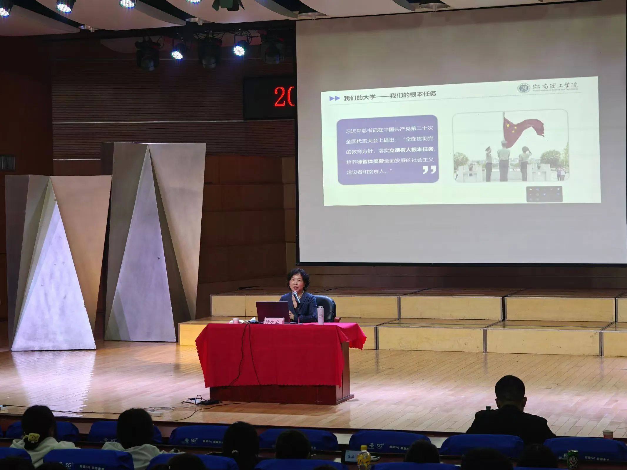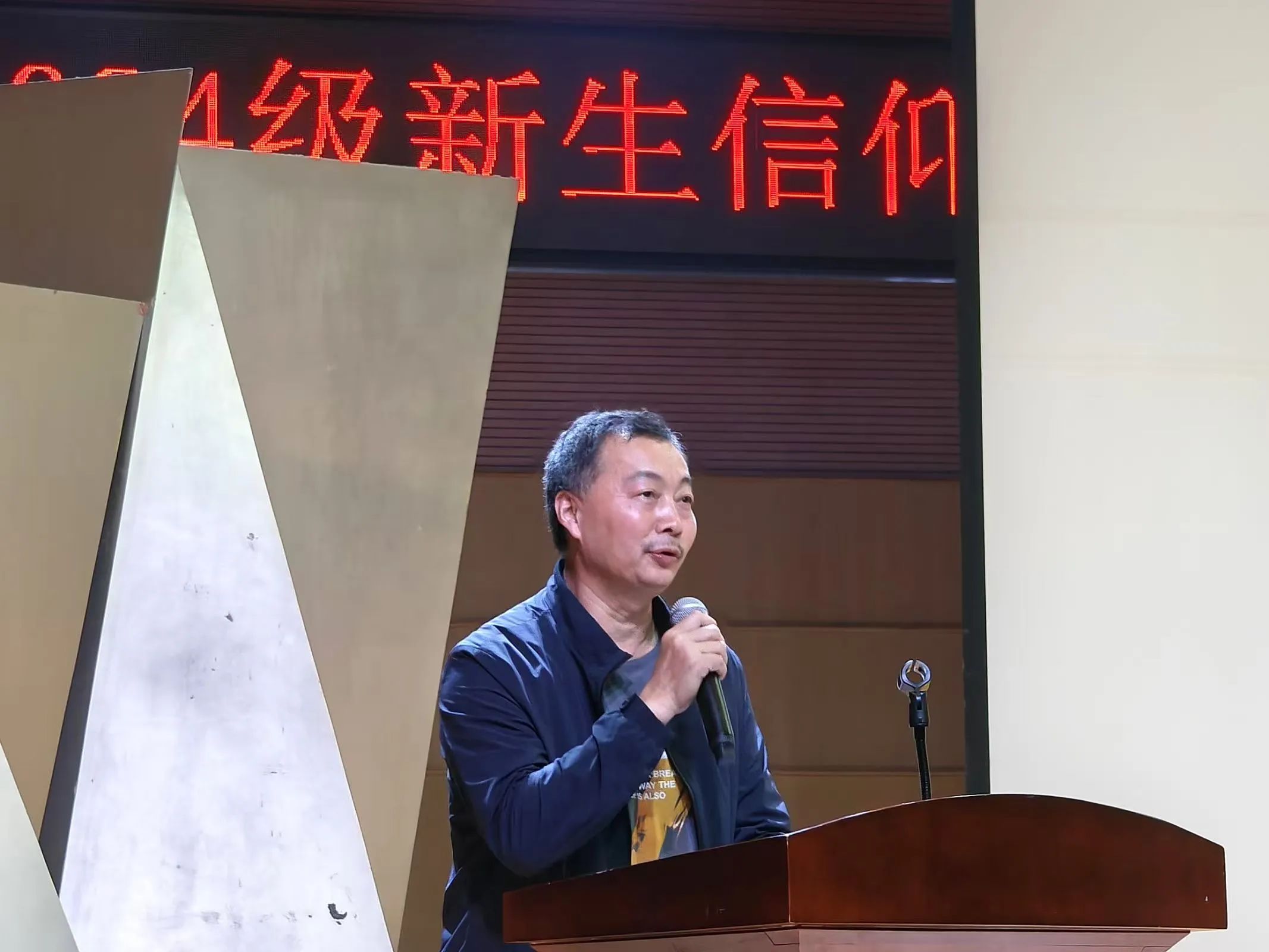 谈及老员工活,她鼓励2024级同学做到“美、德、康、知、能”五好,做到“守时、守纪、守信、守序、守法”五守,提高自我规范能力,学会构建稳定的价值体系,形成一系列优秀习惯,培养强大的自律能力,拥有“干一行,爱一行”的决心,在最美的校园谱写青春华章。