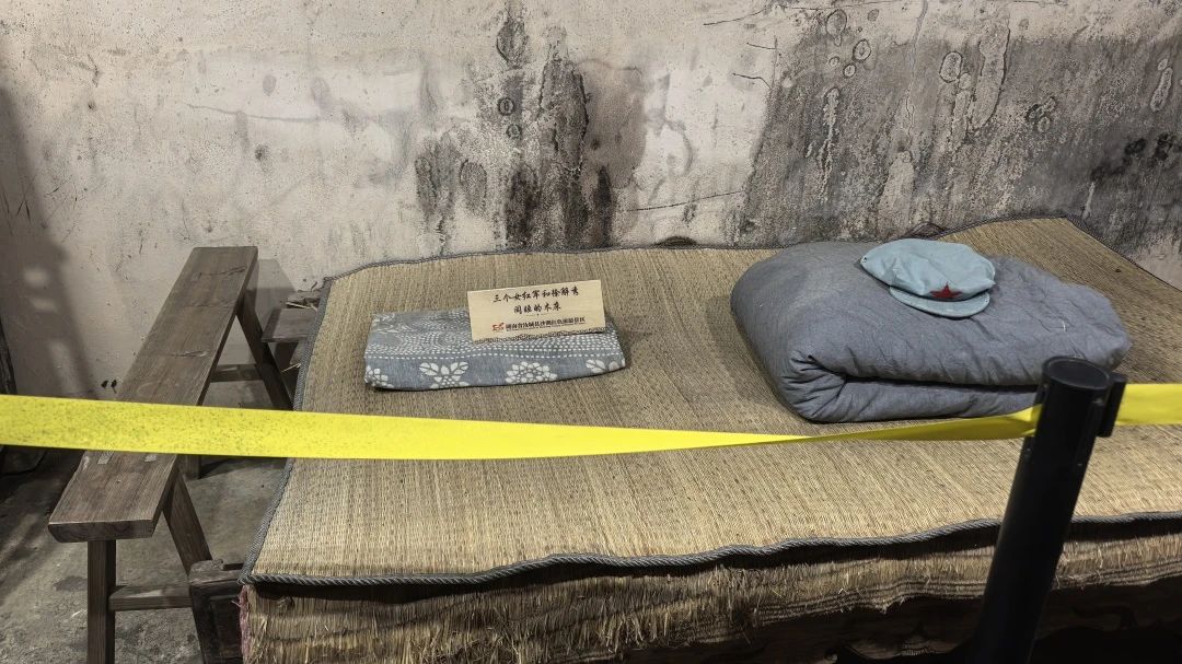 跟随讲解员的脚步,践行团来到“半条被子”旧址。屋檐低矮,土墙斑驳,木床、桌椅依然保持着当年的模样。徐解秀老人的小儿子朱中雄坐在桌边,虽已暮年,眼神却格外明亮,他望着房间内的木床,哽咽道:“就是这张床,三位女红军和我母亲挤在一起,盖着一条被子过了夜。”