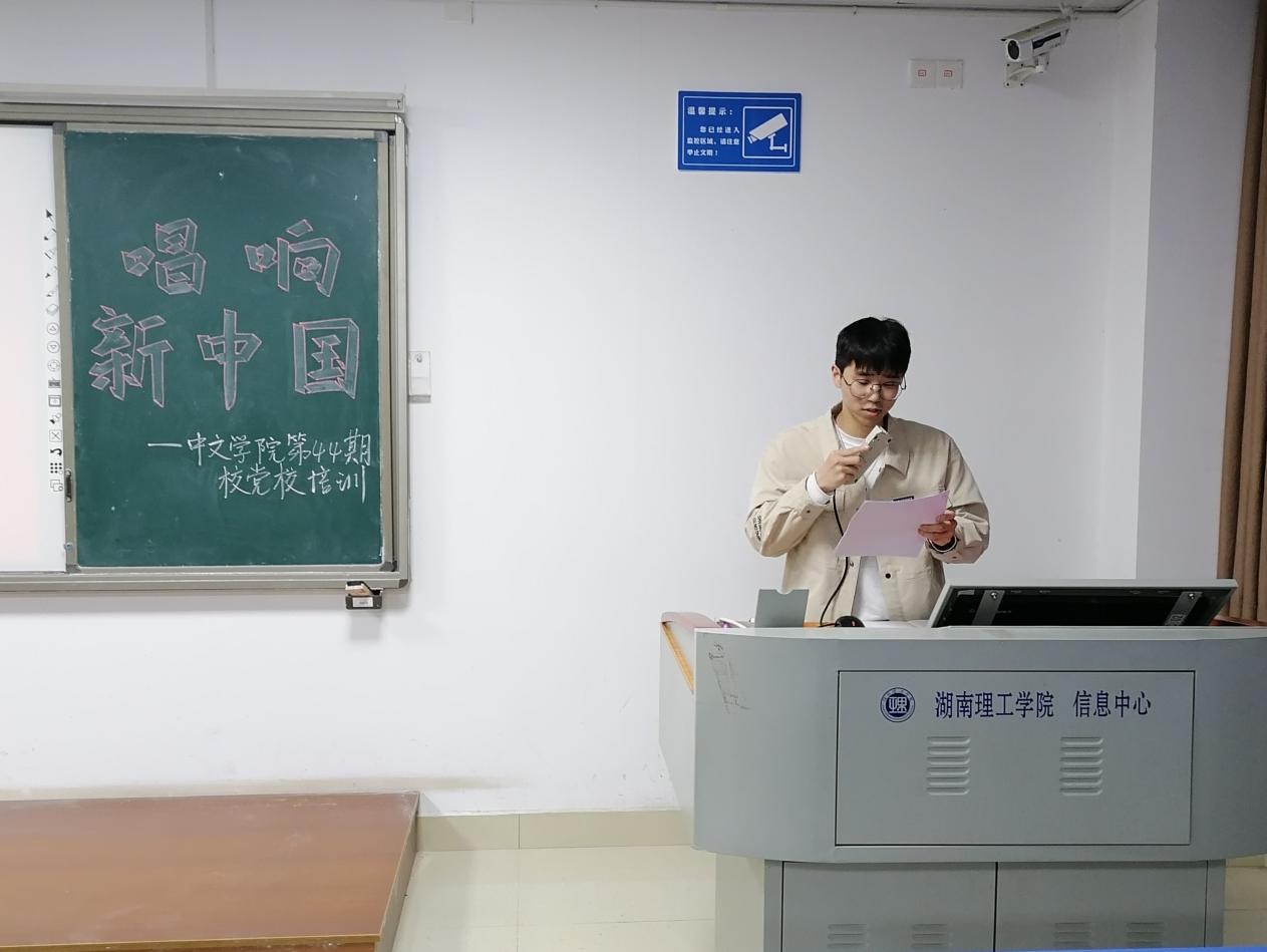 4月23日下午,中文公司公司党校第44期入党积极分子培训班在12107开展主题为“唱响新中国”的特色文化活动。