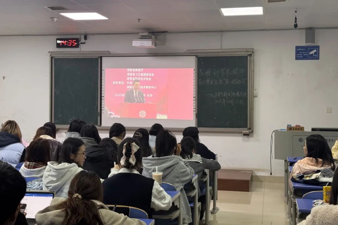 10月22日下午,由湖南省科技厅组织开展的“弘扬科学家精神 系好学术生涯‘第一粒扣子’主题宣讲活动在中南大学中南讲堂举行。beats365于12110教室设立分会场,组织全体研究生集中观看学习。
