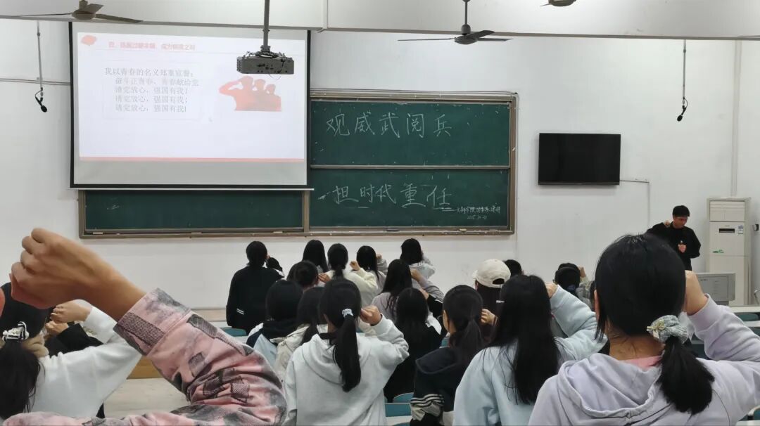 活动最后,全体同学以“请党放心,强国有我”的铿锵誓言凝聚共识。这庄严承诺,不仅展现了新时代青年坚定的理想信念与昂扬的精神风貌,也传递出他们将个人价值融入时代使命,为实现民族复兴伟业贡献青春力量的坚定决心。