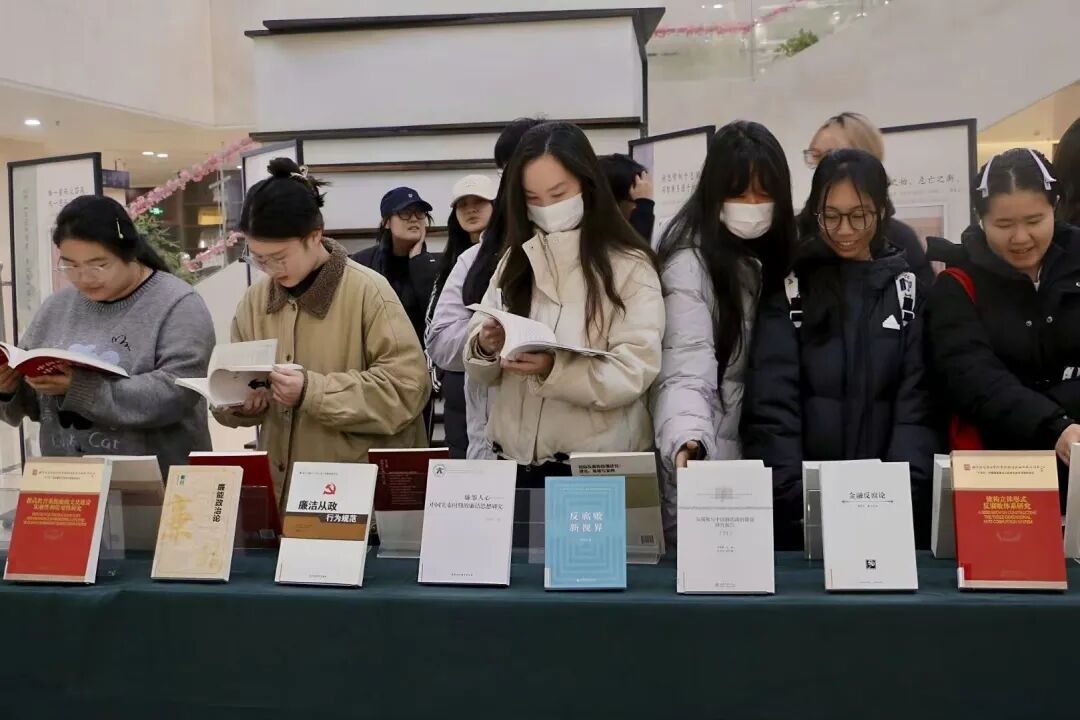 12月10日下午,院领导和支部书记们走进展览现场,在“经典铸廉”“书香润廉”“笔墨书廉”三大板块前驻足细看。其中,“经典铸廉”板块精选习近平总书记廉政建设论述中的古典用典,复刻《习近平用典——廉政篇》原著页面,将中华优秀传统文化与新时代廉政建设相结合;“书香润廉”板块突出展出党的建设理论研究、湖湘文化代表作品及监察监督理论研究三类图书,重点展现任弼时“骆驼精神”等湖湘廉洁基因;“笔墨书廉”板块则展示了12幅由公司离退休老同志创作的书法作品,其中谭先锋同志书写的“公生明,廉生威”,源自明代年富《官箴》刻石,深刻诠释了公正廉洁的为官之道。参观过程中,大家不时交流感悟,强调要以廉洁文化为引领,发挥示范带头作用,推动廉洁理念在校园落地生根。