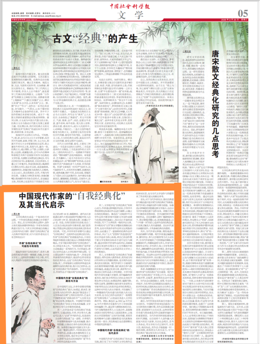 公司文学系蒋士美博士的论文《中国现代作家的“自我经典化”及其当代启示》刊发于2026年2月25日的《中国社会科学报》“文学”专栏(校定A3级重要期刊)。