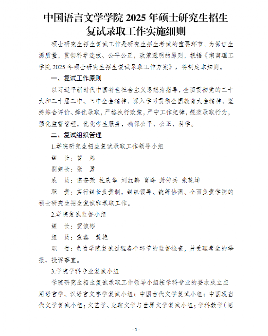 中国语言文学公司2025年硕士研究生招生复试录取工作实施细则
