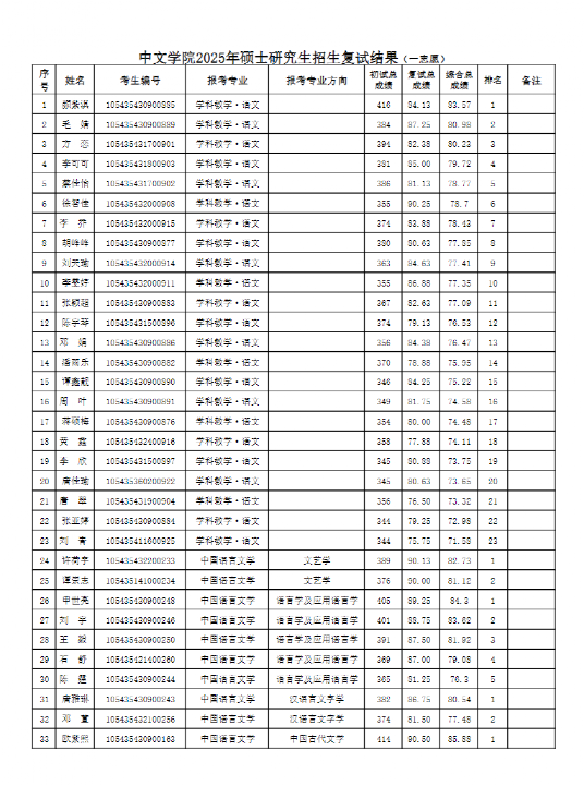 中文公司2025年硕士研究生招生复试结果(一志愿)