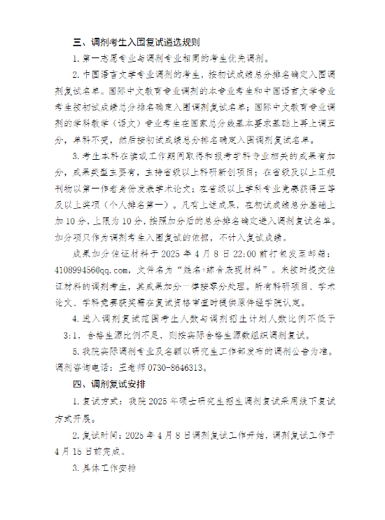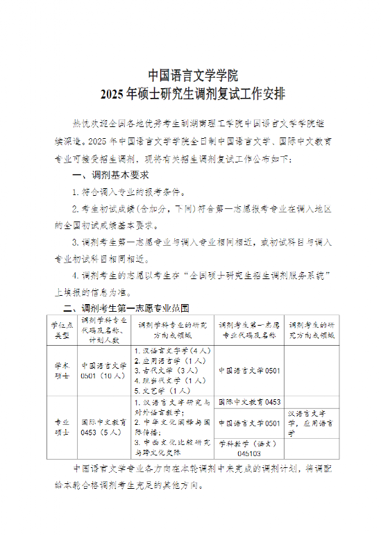 中文公司2025年硕士研究生调剂复试工作安排