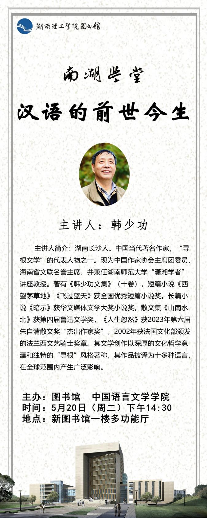 韩少功主讲!南湖学堂等你来听